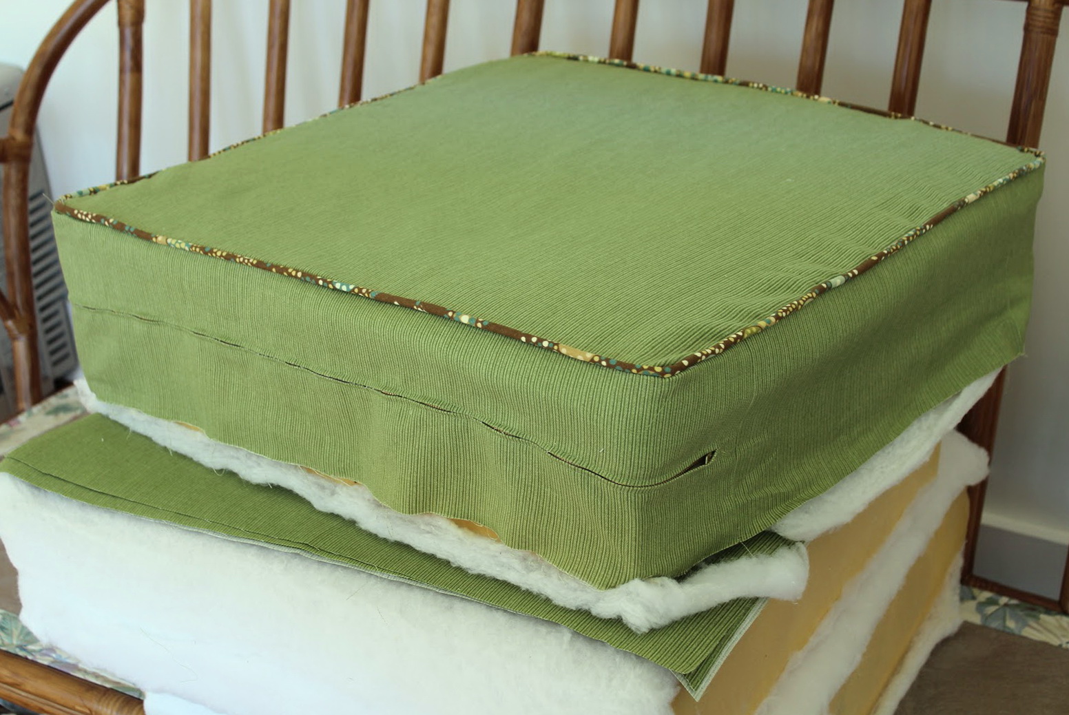 More images for how to make a cushion cover without a sewing machine » Styled by erica reitman and paige geffen. I love the fabric on your cushion and i think a light green would go great with the brown. Want to cover a cushion? Pretend the foam is a gift box and wrap it as you would a gift, using fabric instead of wrapping paper.